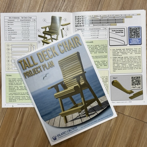¼” MDF templates and project booklet to build the Tall Deck Chair from Island Crown